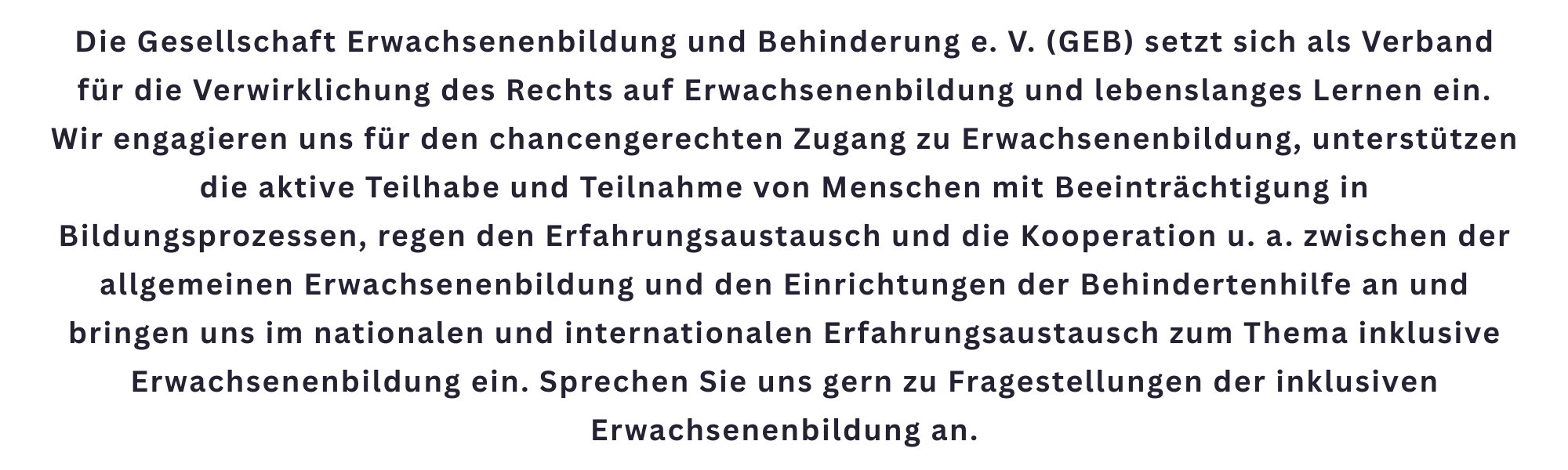 Die aktuelle Ausgabe der Zeitschrift Erwachsenenbildung und Behinderung (ZEuB 1/25) befasst sich mit dem Thema Bildung für nachhaltigen Entwicklung und stellt diese in den Kontext inklusiver Erwachsenenbildung. Mit der Globalen Nachhaltigkeitsagenda der Vereinten Nationen (UN), den 17 Nachhaltigkeitszielen und sechs Querschnittsdimensionen der UNESCO (2016), ist seit nahezu zehn Jahren ein ganzheitliches Verständnis von Nachhaltigkeit gesetzt. Selten wird in diesem Zusammenhang allerdings eine inklusive Erwachsenenbildung diskutiert. Das Themenheft fokussiert aufgrund dessen Normative und Umsetzungsmöglichkeiten einer inklusiven Erwachsenenbildung für nachhaltige Entwicklung und lädt dazu ein, das Thema aus unterschiedlichen Perspektiven zu betrachten. https://geseb.de/zeitschrift/aktuelle-ausgabe/